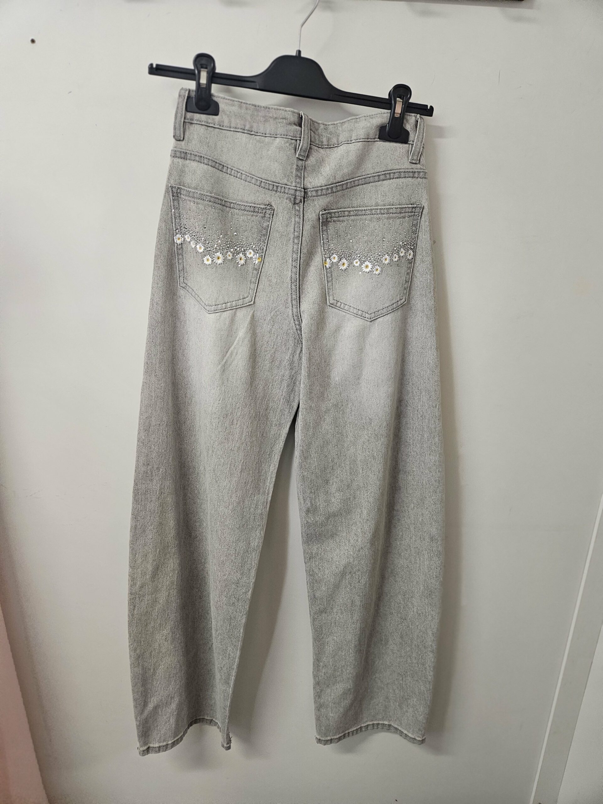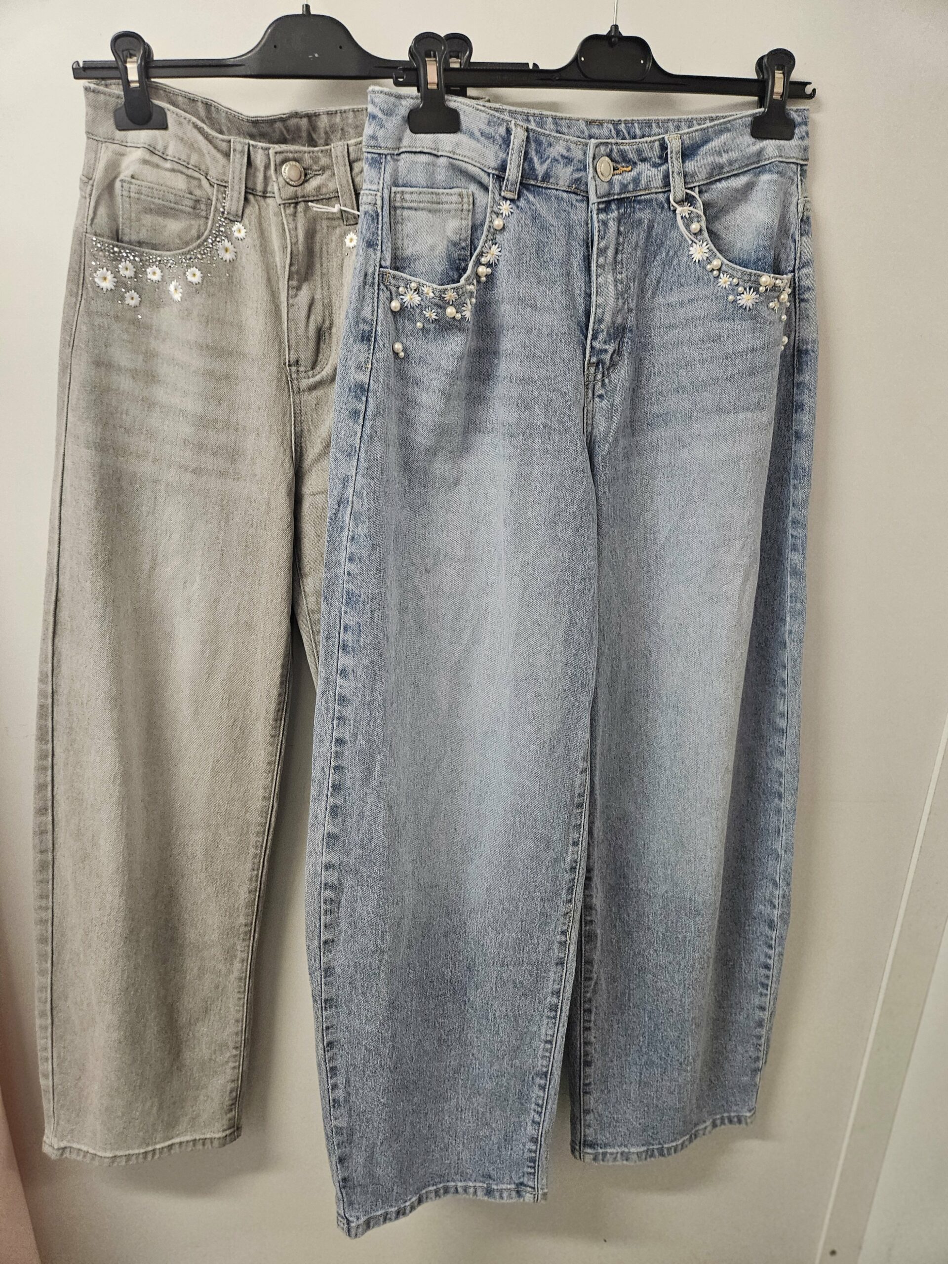 Jean coupe Barrel, brodé marguerites
