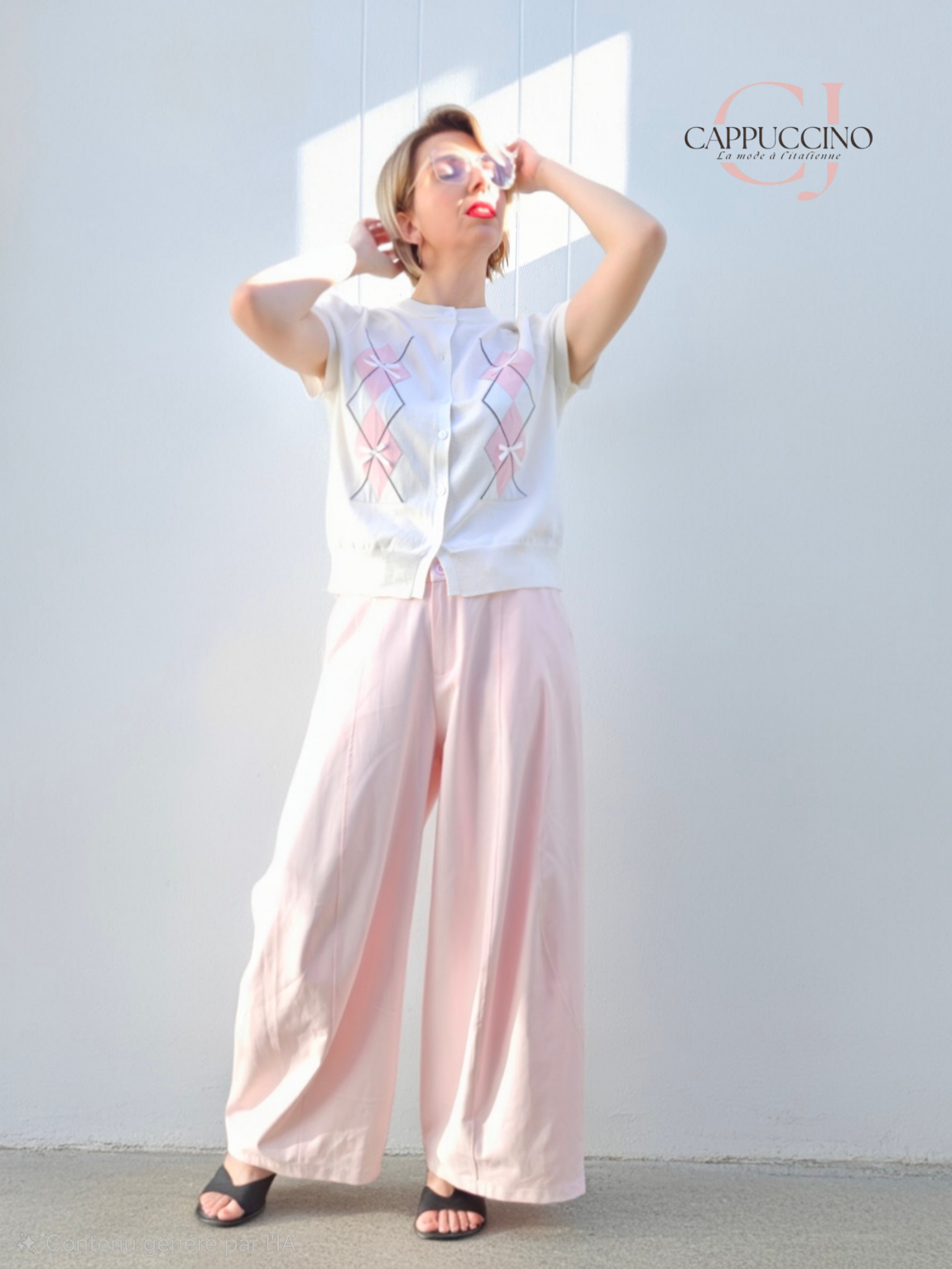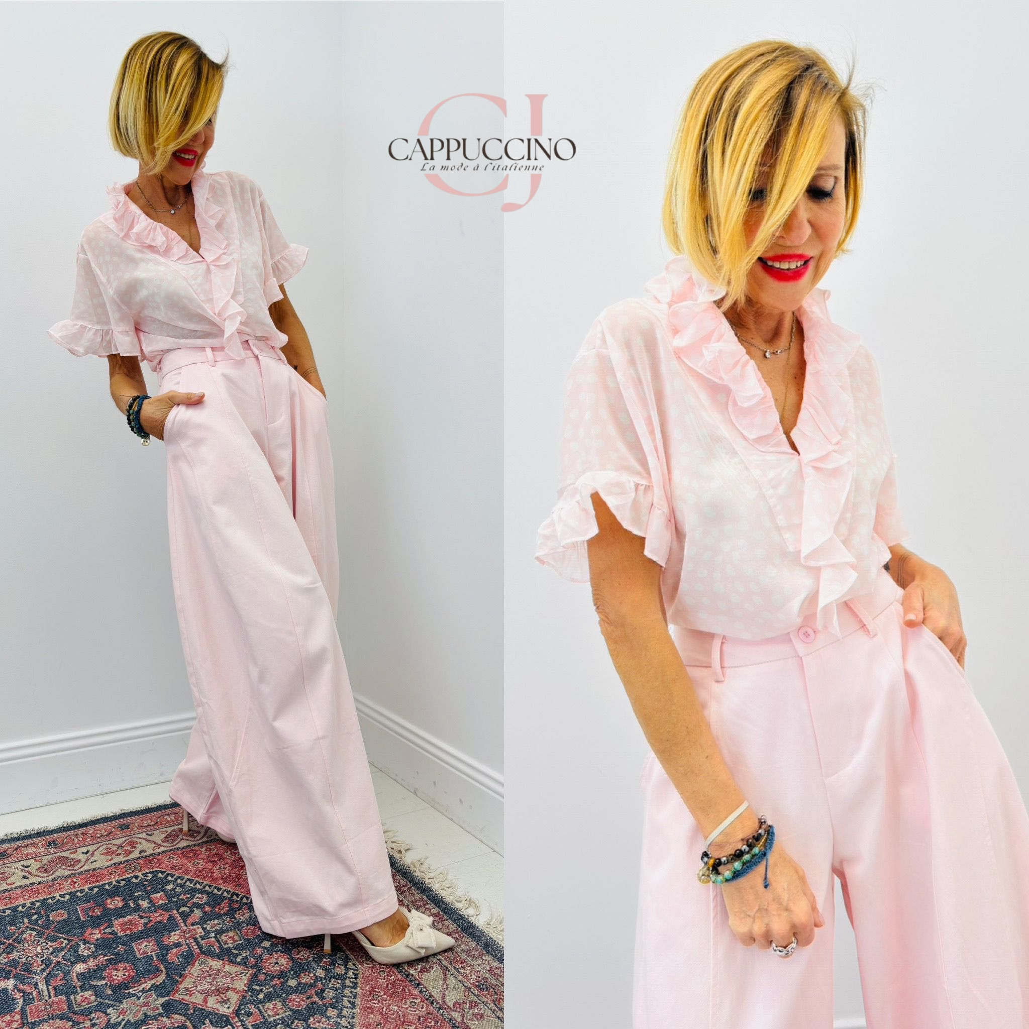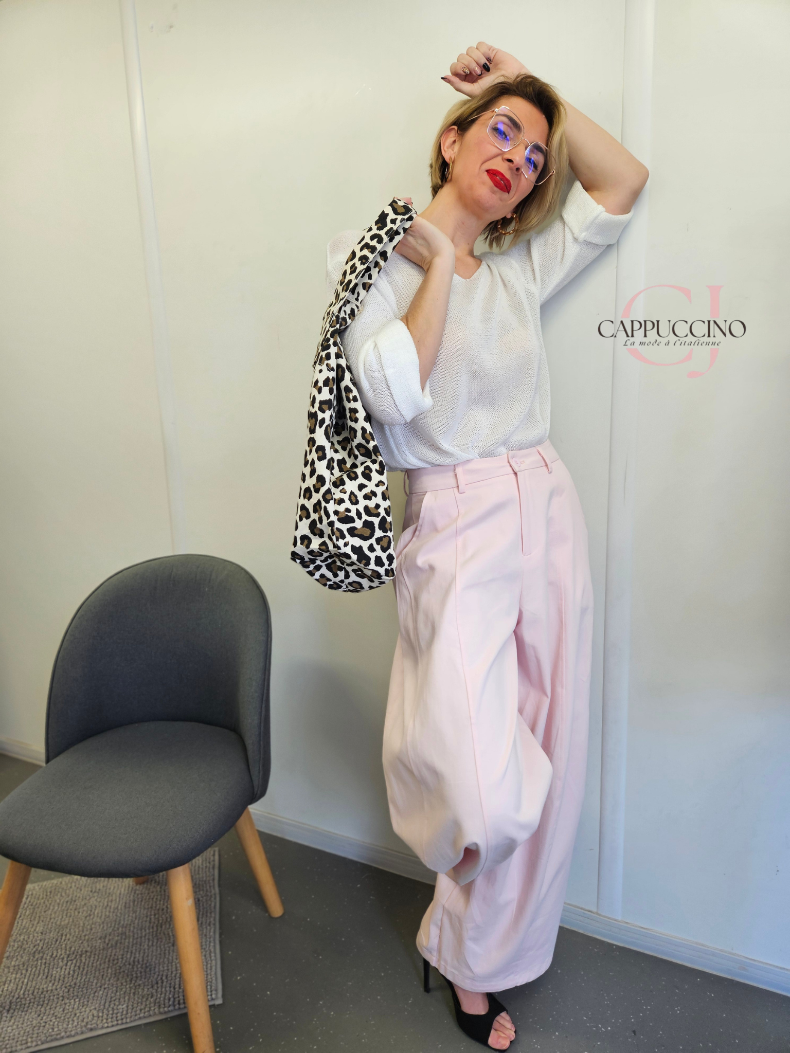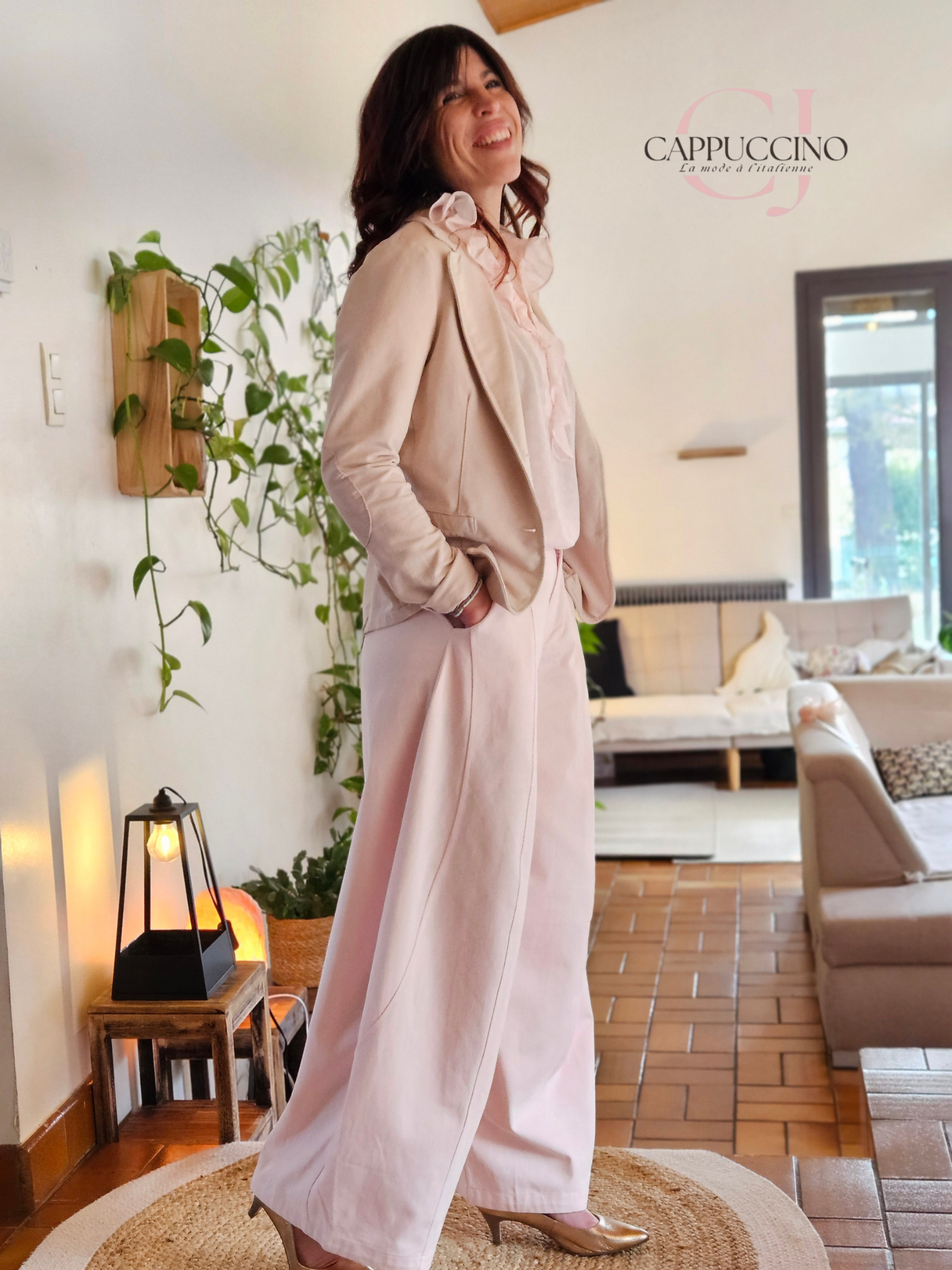 pantalon ample à coutures sur devant de la jambe, poches côtés , passants à la taille et pinces haut de fesse