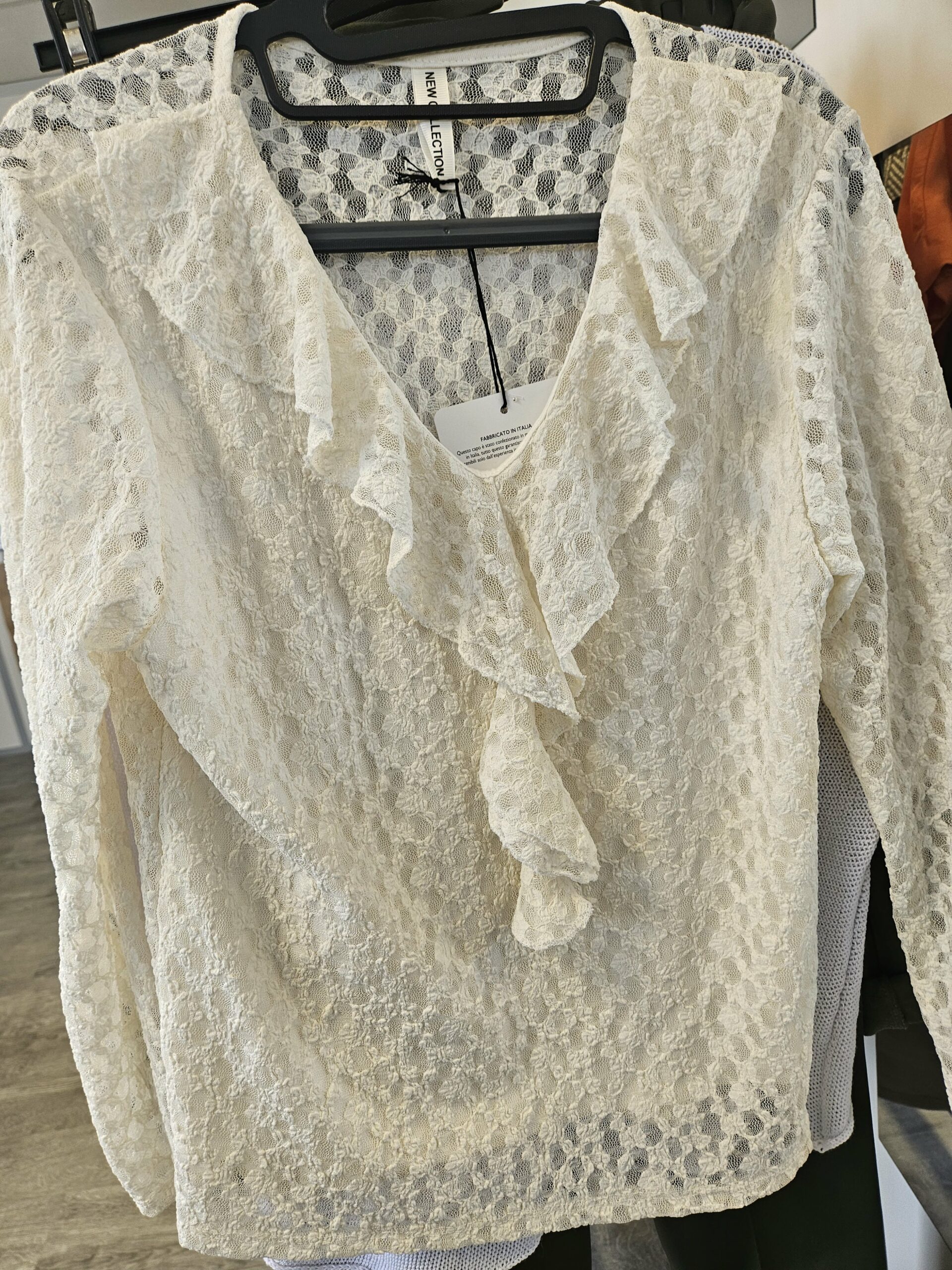 Dentelle, devant doublé, coupe ajustée, col a froufrou